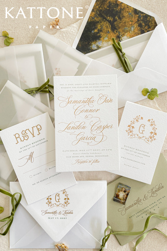 Kattone maintains the authority to employ visuals of each stationery item crafted for customers in the advertising of its brand. Should this be contrary to your desires, please notify us upon proof approval.