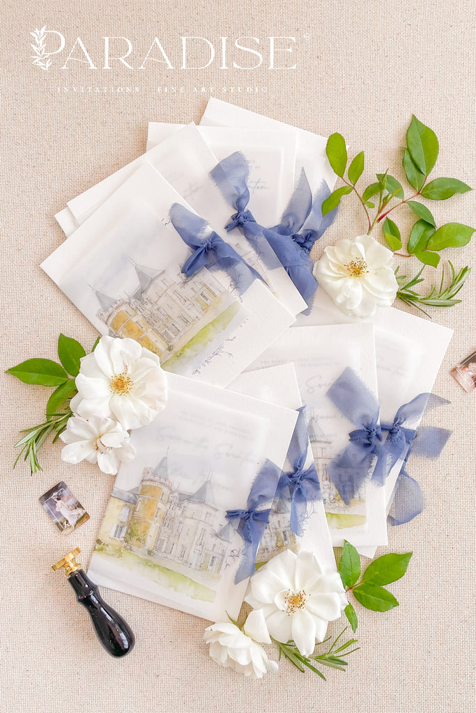 text, color, fonts, number of cards, vellum covers, silk ribbons, belly bands and envelope colors