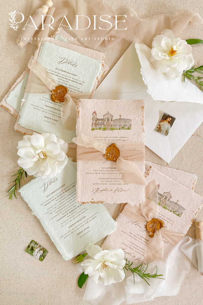 Arianna Colored Handmade Paper Wedding Invitation Sets