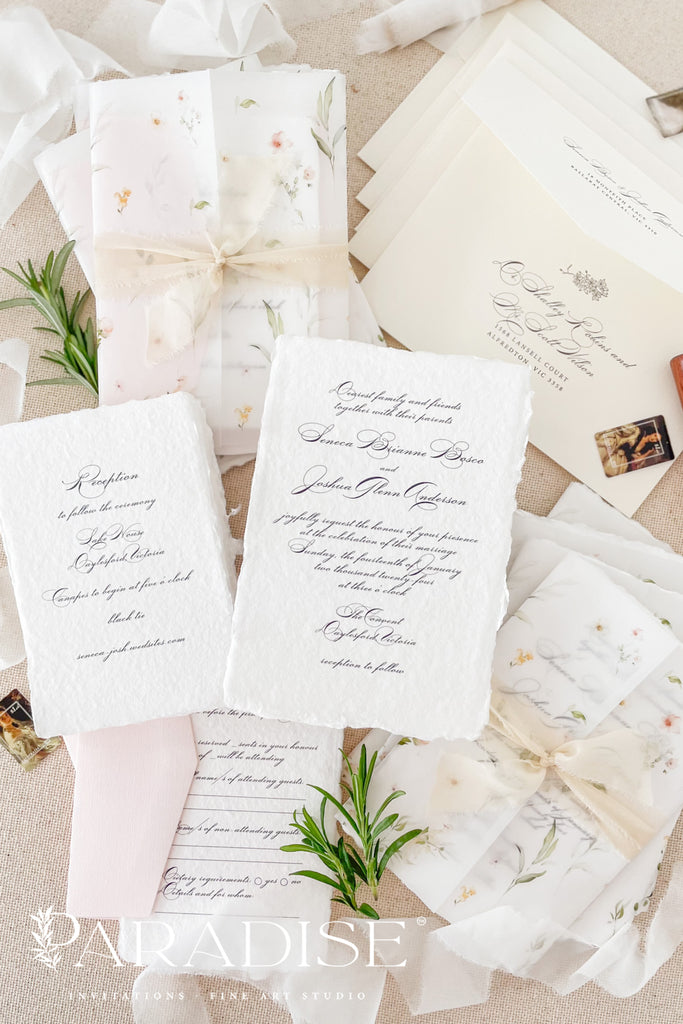 If uncertain about the type and/or quality of paper for your stationery, please request a sample pack. No refunds are available once an order is placed, even if the paper is not to your liking.