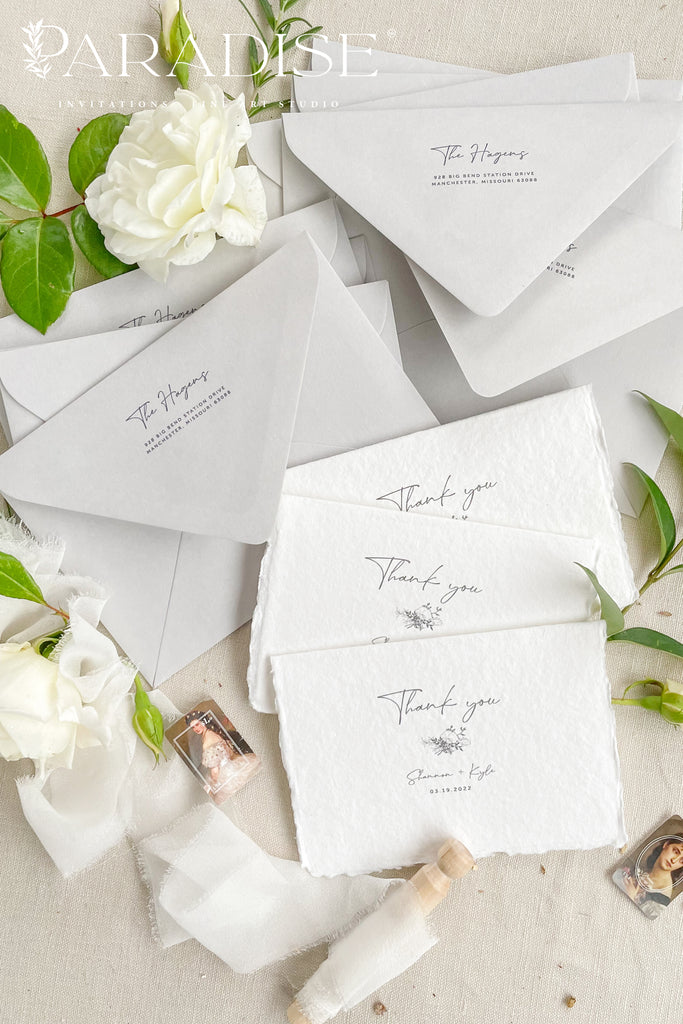 If uncertain about the type and/or quality of paper for your stationery, please request a sample pack. No refunds are available once an order is placed, even if the paper is not to your liking.