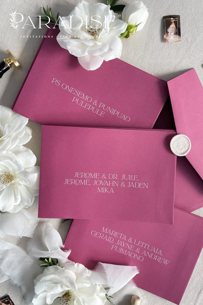 Plum Envelopes and White Ink Printing