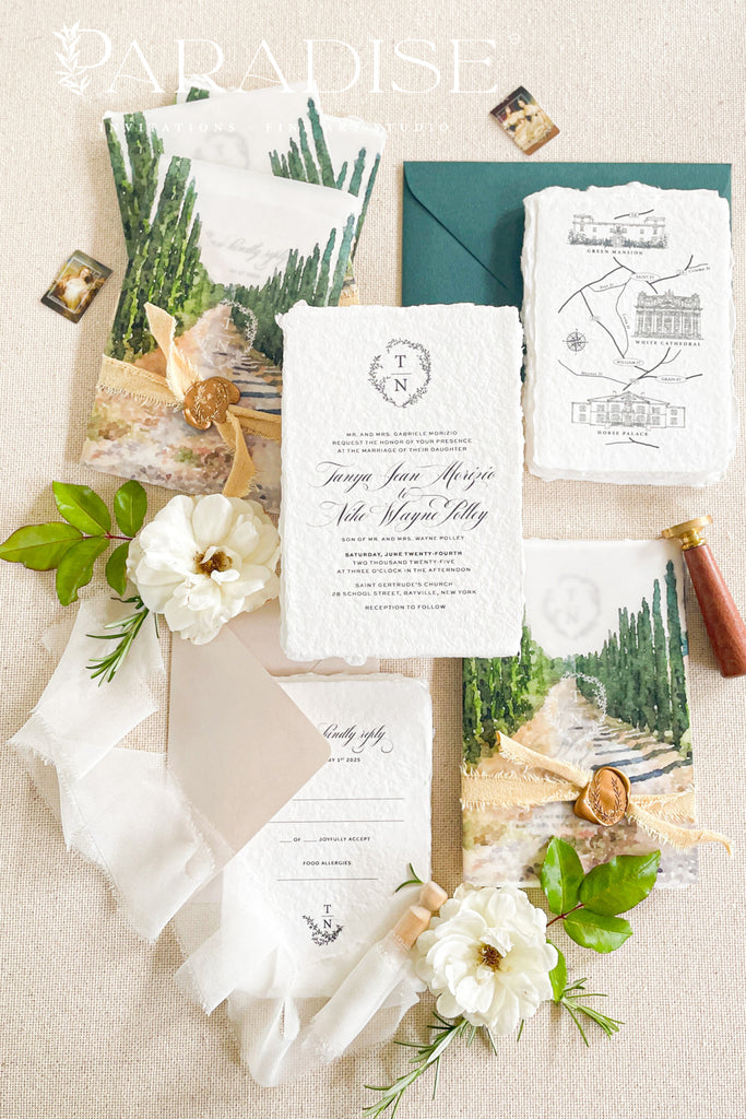 Ada Handmade Paper Wedding Invitations with Cotton Belly Bands