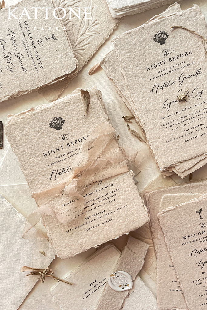 Adola Rehearsal Dinner Handmade Paper Wedding Invitations